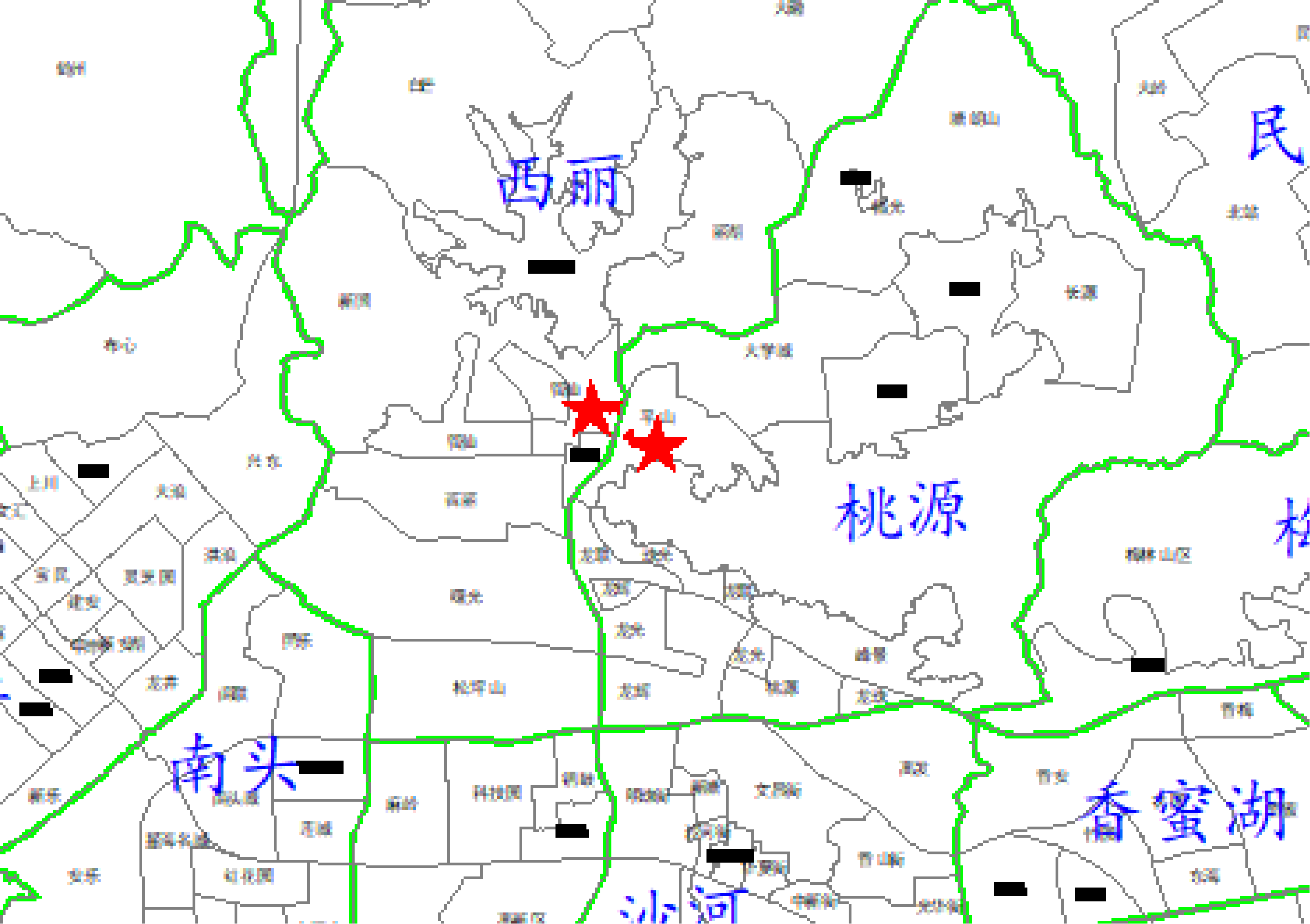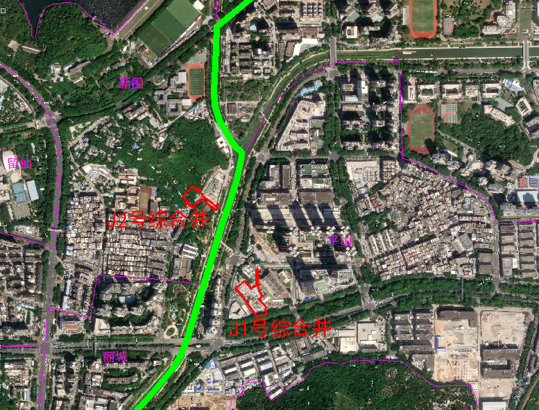 J1号综合井深圳市南山区桃源街道文体站东侧;J2号综合井深圳市南山区西丽街道九祥岭湿地公园北侧。
