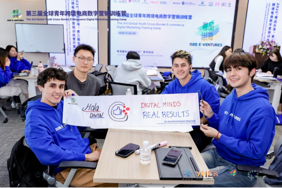 Members of Team “Hola Digital” showcase their slogan, “Digital Minds, Real Results,” during the 3rd Global Youth Cross-Border E-Commerce Digital Marketing Training Camp.