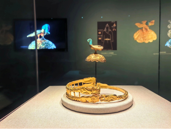 At the exhibition, small details reward close inspection. A hollowed bronze scabbard with a bird motif is remarkably delicate. A boar-pattern ring ornament looks plain at first glance, but its five boars are arranged in an interlocking design that required careful geometric planning. A crane-beak-shaped bronze staff head symbolizes a wish for longevity, and a deer ornament is especially adorable.