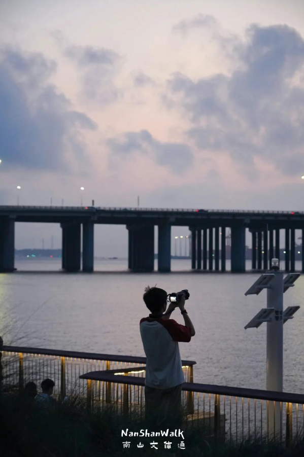 在前海石公园的海边,日出被水波折叠成碎银和金光。在这里,城市喧嚣渐渐退远,开阔的视野与慢下来的节奏,仿佛一场温柔的邀约。