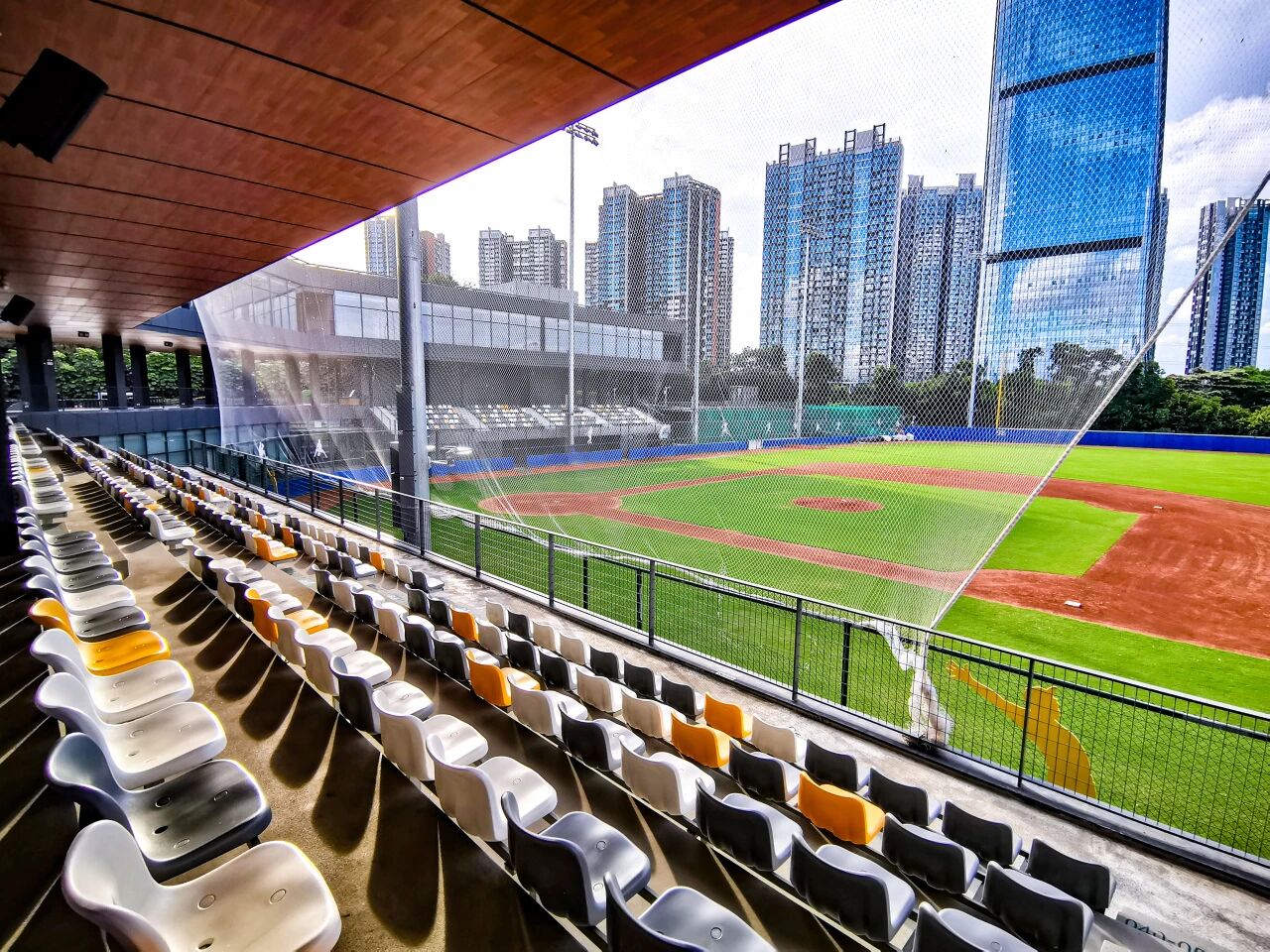 棒球场拥有天然草坪标准的比赛场地和550个观众席,是深圳首个具备举办大型赛事的标准棒球场地,配备完善的培训和比赛设施,以及充足的运动、休闲空间。