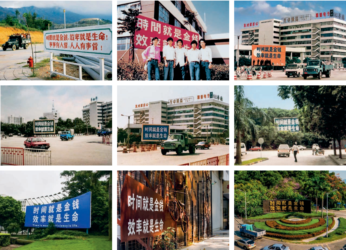 不同时期的“时间”标语牌。