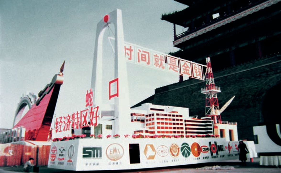 1984年,参加国庆35周年巡游的蛇口工业区彩车。