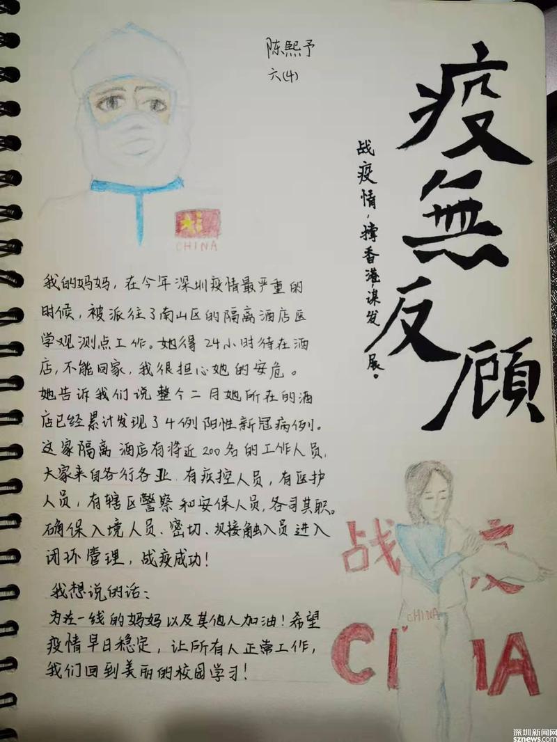“当我在隔离酒店参与抗疫工作时收到孩子发过来的这幅小画,几乎泪盈于睫,心中很感动。孩子在长大,用她的方式支持妈妈工作。践行初心,担当使命,所有一线的抗疫人员都在坚守岗位履职尽责,全力守护城市安全、社会安定,相信深圳一定能尽快打赢这场无声的战疫。”陈琼说道。