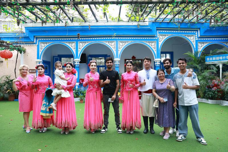 除观看演出外,国际友人还在园区内徜徉漫步,游览了从长城、敦煌到江南园林等微缩景观,并走进民俗文化村,探访各具特色的民族村寨。在“一砖一瓦皆故事,一景一物有来历”的营造中,他们不仅领略了中国山河的多元风貌,也通过民居建筑、手工艺与节庆习俗,切身感受中华传统文化的深厚底蕴与鲜活形态。