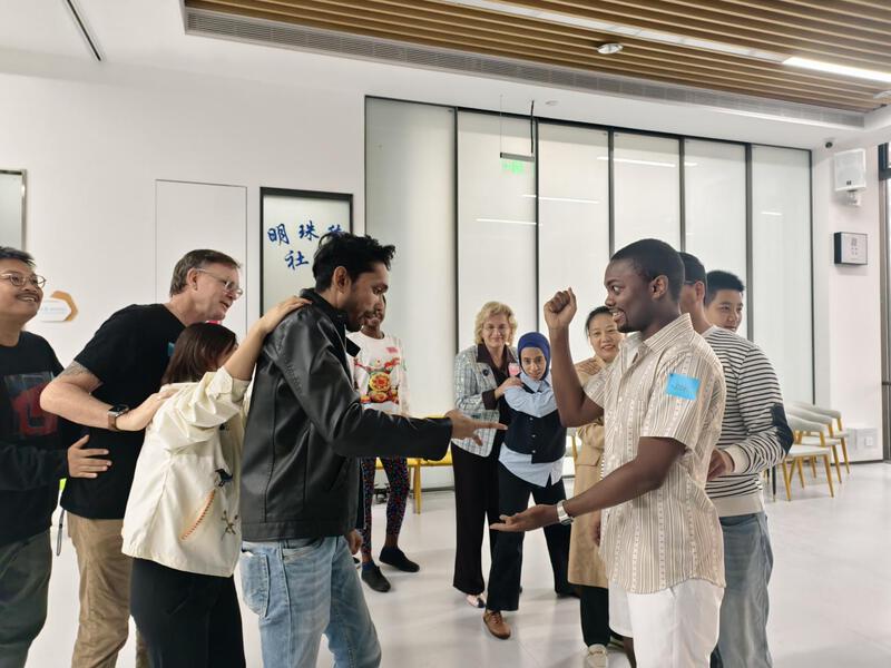 随后的破冰游戏中,志愿者通过“我来自哪里”“我最喜欢的中国菜”“用家乡话问好”等环节拉近了彼此的距离。有人笑着说最爱炒河粉的烟火气,有人提到饺子里包裹的温暖,还有人坦言“只要是中国菜都喜欢”。当熟悉的《听我说谢谢你》旋律轻轻响起,大家用家乡话互致问候,笑声与歌声交织,现场洋溢着浓浓的温情与默契。