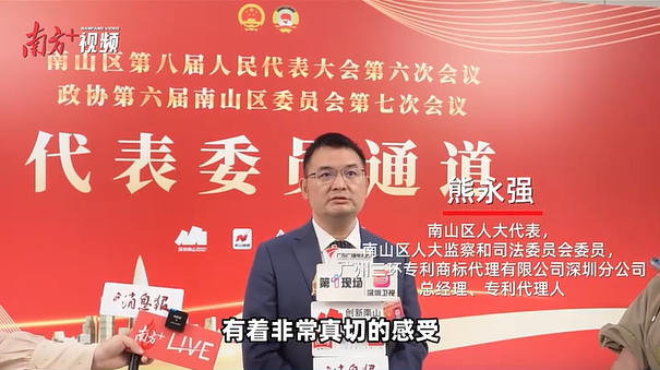 南山区人大代表、南山区人大监察和司法委员会委员,广州三环专利商标代理有限公司深圳分公司总经理,专利代理人熊永强分享,作为履职五年的南山区人大代表,同时也是扎根南山的企业经营者,他对南山的营商环境有着最真切的感受。
