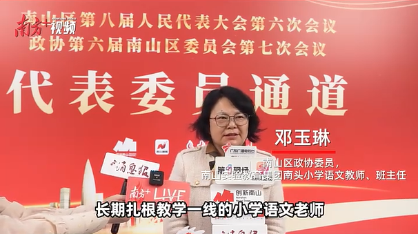 邓玉琳长期扎根教学一线,亲身经历了南山教育的“六新行动”。她指出,该行动不仅是校园硬件的升级,更是育人生态的系统性重构。通过建设多功能学习活动空间、智慧教室和多样化户外场地,为培养学生核心素养提供了坚实的实体支撑,是民生福祉在教育领域的生动体现与深化。
